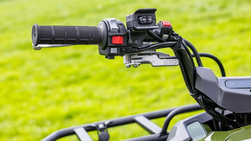 Leva mecanica montata a manubrio per cambiare da 2 a 4 ruote motrici.